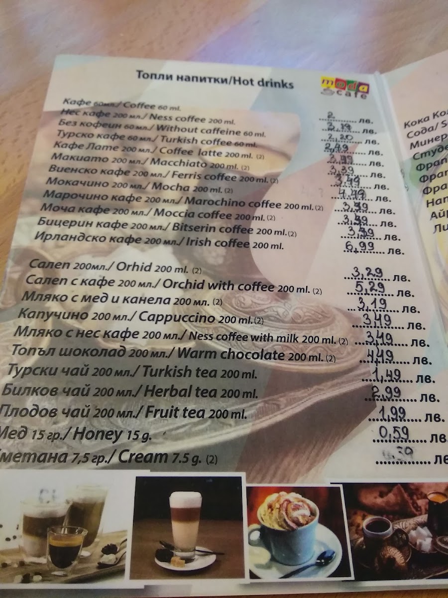 Cafe Moda Menu
